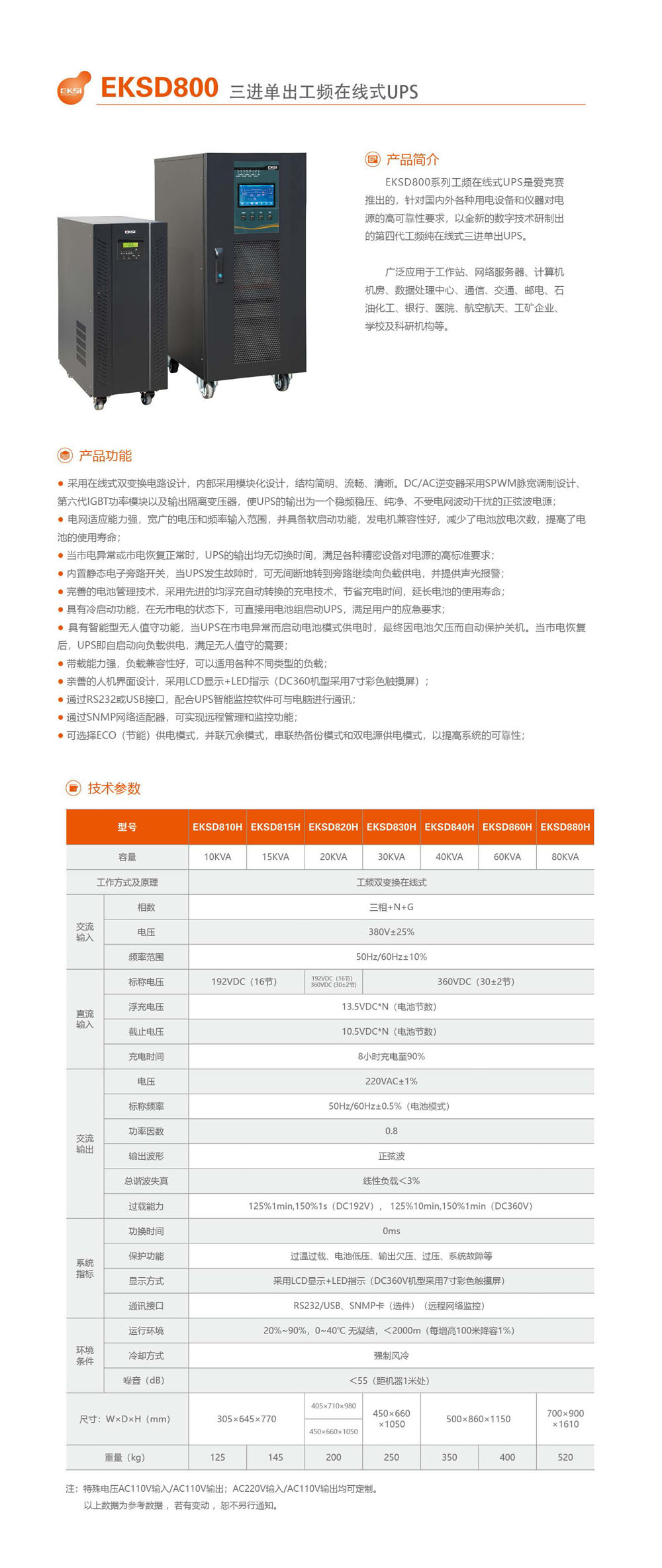 愛(ài)克賽EKSD800系列塔式三進(jìn)單出工業(yè)級工頻在線(xiàn)式UPS電源采用在線(xiàn)式雙變換電路設計,DC/AC逆變器采用SPWM脈寬調制技術(shù)、IGBT功率模塊以及輸出隔離變壓器,使UPS的輸出為一外穩頻穩壓、純凈、不受電網(wǎng)波動(dòng)干擾的正弦波電源。
