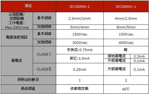 20. (MW)信息類(EN60950-1)和醫(yī)療類(EN60601-1)安規(guī)標(biāo)準(zhǔn)有什么不同?